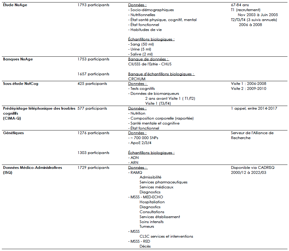 Banques de données et d’échantillons biologiques de l’Étude longitudinale québécoise sur la nutrition comme déterminant d’un vieillissement réussi